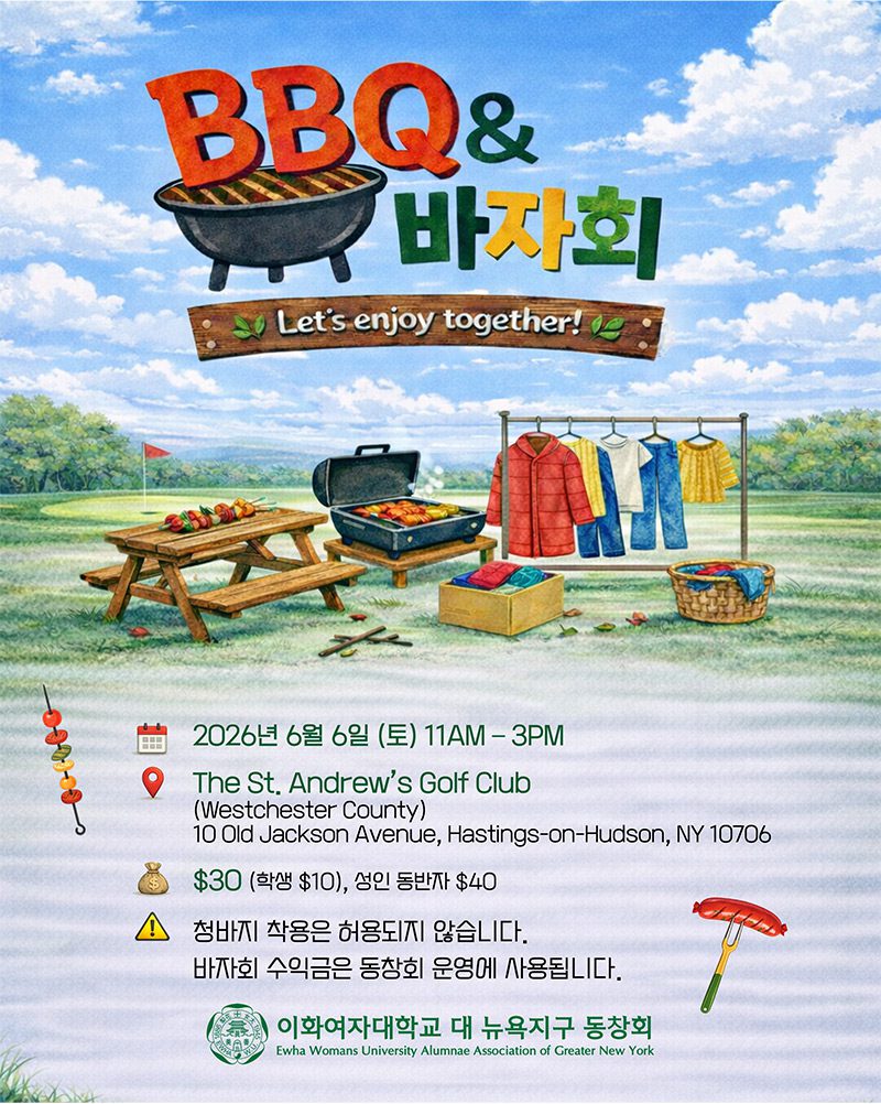 뉴욕지구 동창회의 발전을 위해 열리는 <바베큐와 바자회>에 초대합니다.